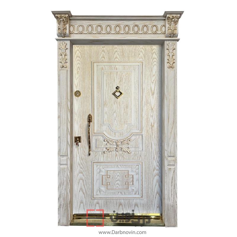 درب ضد سرقت روکش چوب بلوط سفید طلایی پتینه کد